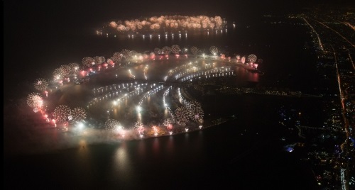 The record setting performance was a collaborative 6-month effort with Dubai’s government along with assistance from their civil defense. The show emanated from over 550 locations on Dubai’s iconic man made landscape consisting of the entire outline of the Palm Jumeirah and World Islands. This World Record performance featured customized patterns and effects that shimmered over 80 breakwater positions, 48 Palm Crescent positions, 250 floating platform locations and hundreds of artificial archipelagos. The fireworks bursting over the Palm Jumeirah and World Islands displayed the latest pyrotechnically advanced design, science, and engineering featuring exclusive Grucci Sky Etching™ in Arabic digits, EXPO 2020 (celebrating the recent EXPO award to Dubai UAE), and a “Sunrise” scene of 7 – the 600mm (24’’) aerial shells (the largest ever fired in the UAE). The 14” to 24” “Sunrise” shell components were engineered in the Grucci New York facility and fittingly displayed off "New York Island" on the World Islands in Dubai. These breathtaking scenes and World Record performance was choreographed to an original musical score.